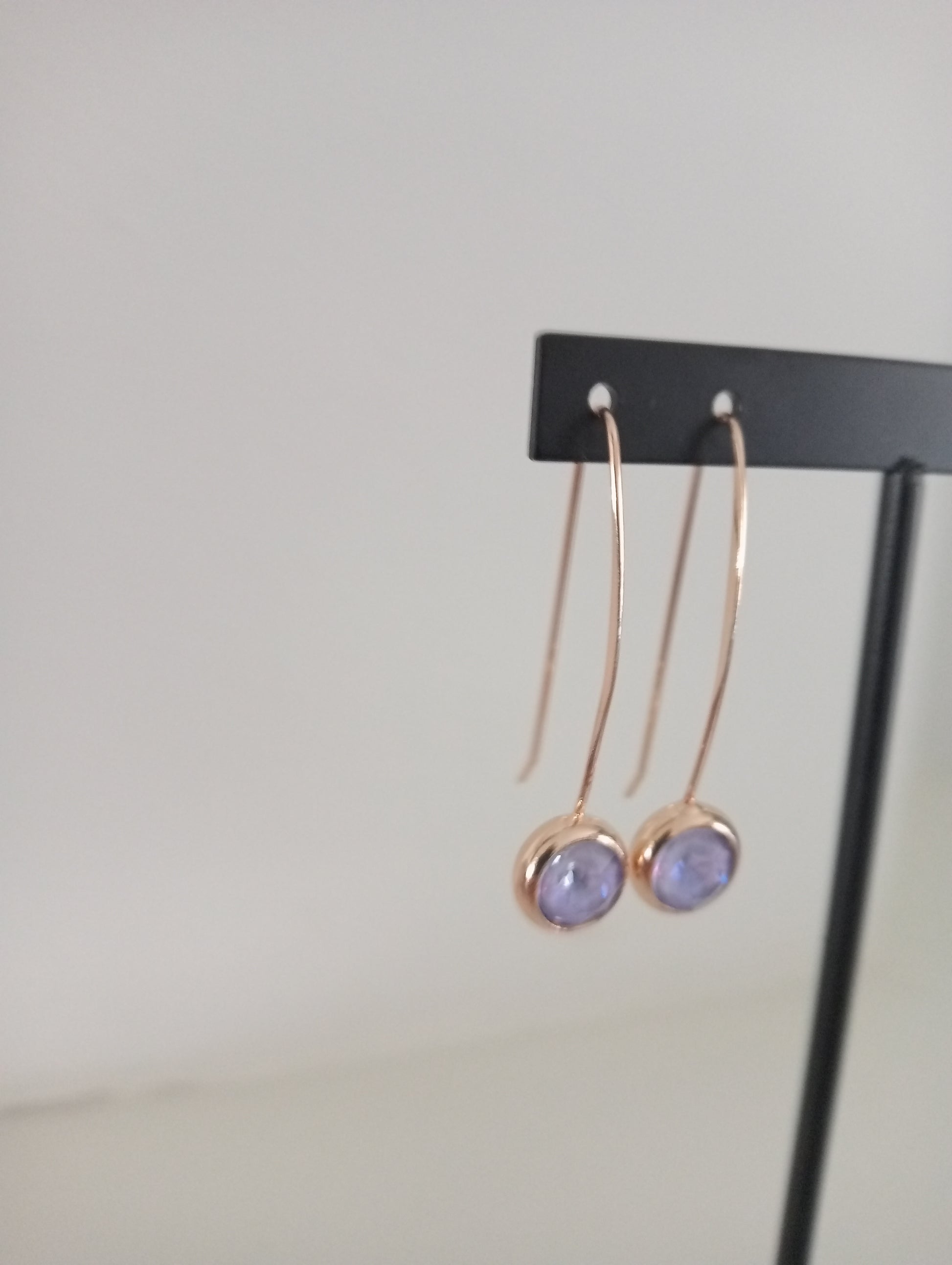 Deze prachtige lange oorbellen stralen in het zonlicht en geven je outfit een boost. Met een schitterend paars steentje zijn ze een echte blik vanger en een toevoeging aan elke look. ze hebben een fijn draagcomfort.