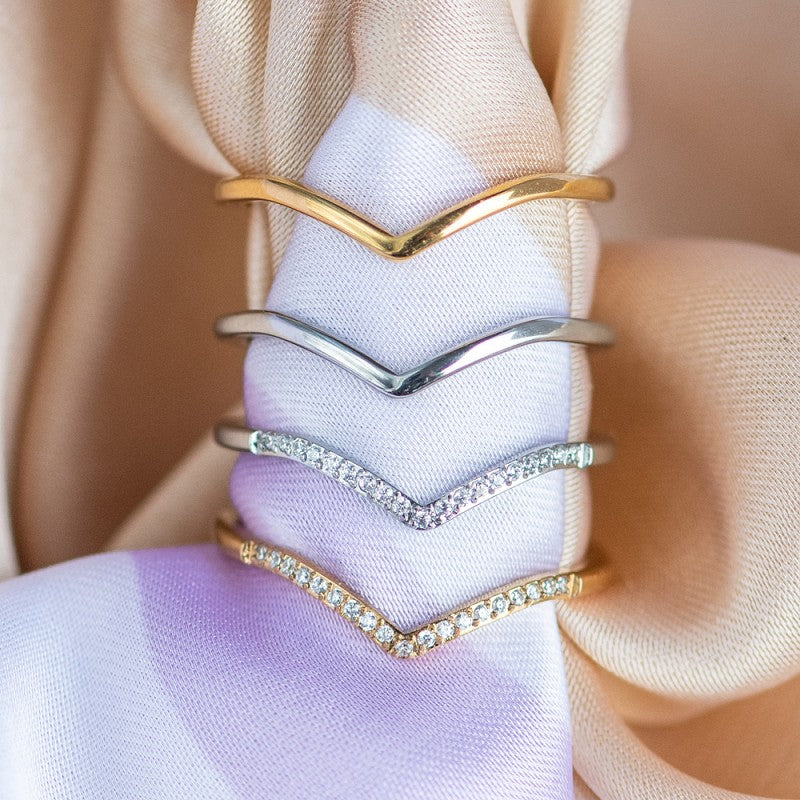 De iXXXi ring Fame Venus with stones is een 1mm brede single ring gemaakt van stainless steel. De ring bestaat uit een glad design met op de voorzijde een 'V'-vorm, die is ingelegd met kleine zilverkleurige zirconia steentjes.