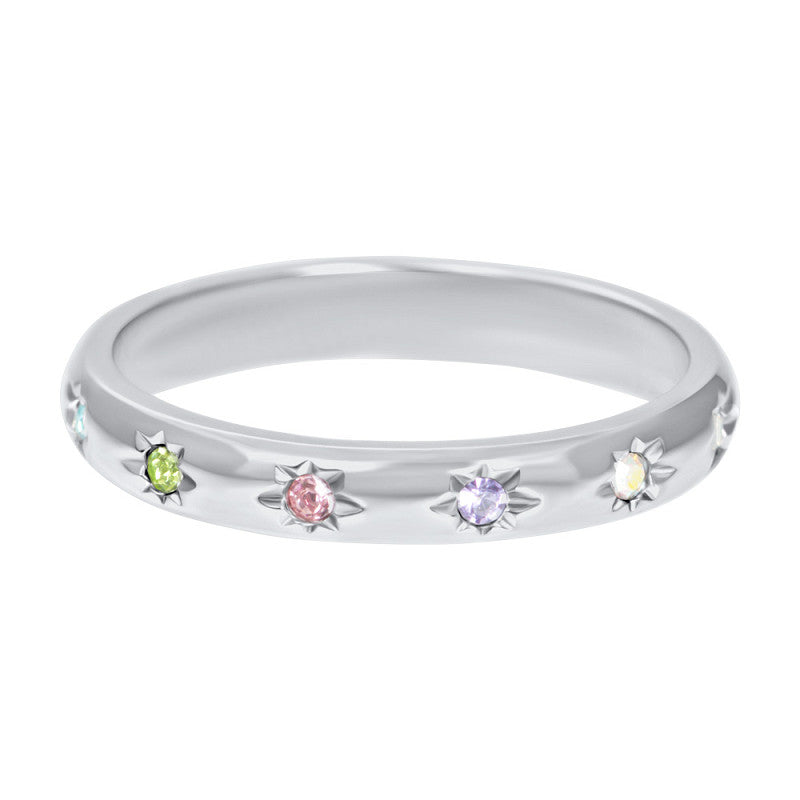 De iXXXi Fame ring Serena is een 3mm brede single ring gemaakt van stainless steel en is voorzien van een goud- of zilverkleurige plating. De ring is op diverse plekken voorzien van multicolor ingelegde zirconias.