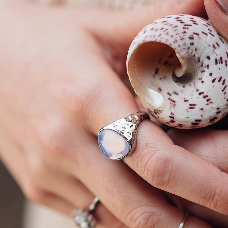 De iXXXi ring Fame Sol is een brede single ring en is gemaakt van stainless steel. De ring is voorzien van een opvallende opaalkleurige steen.