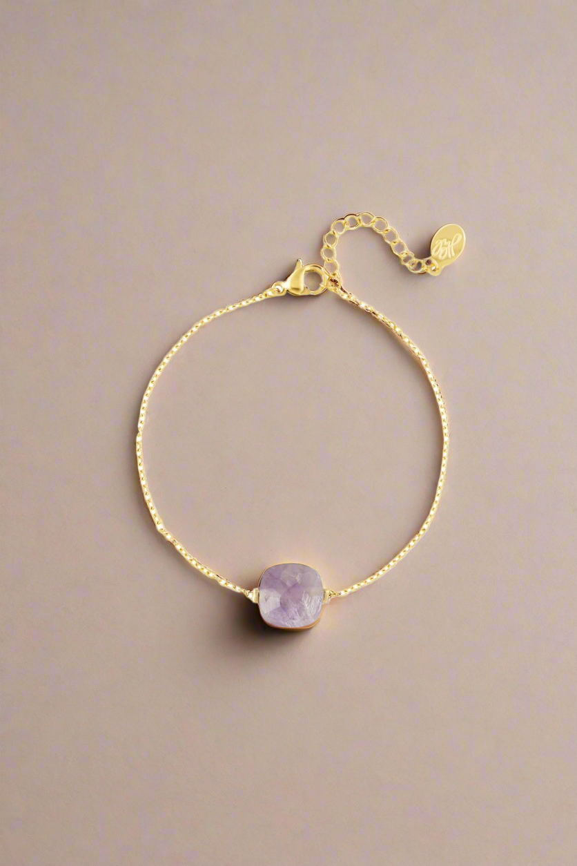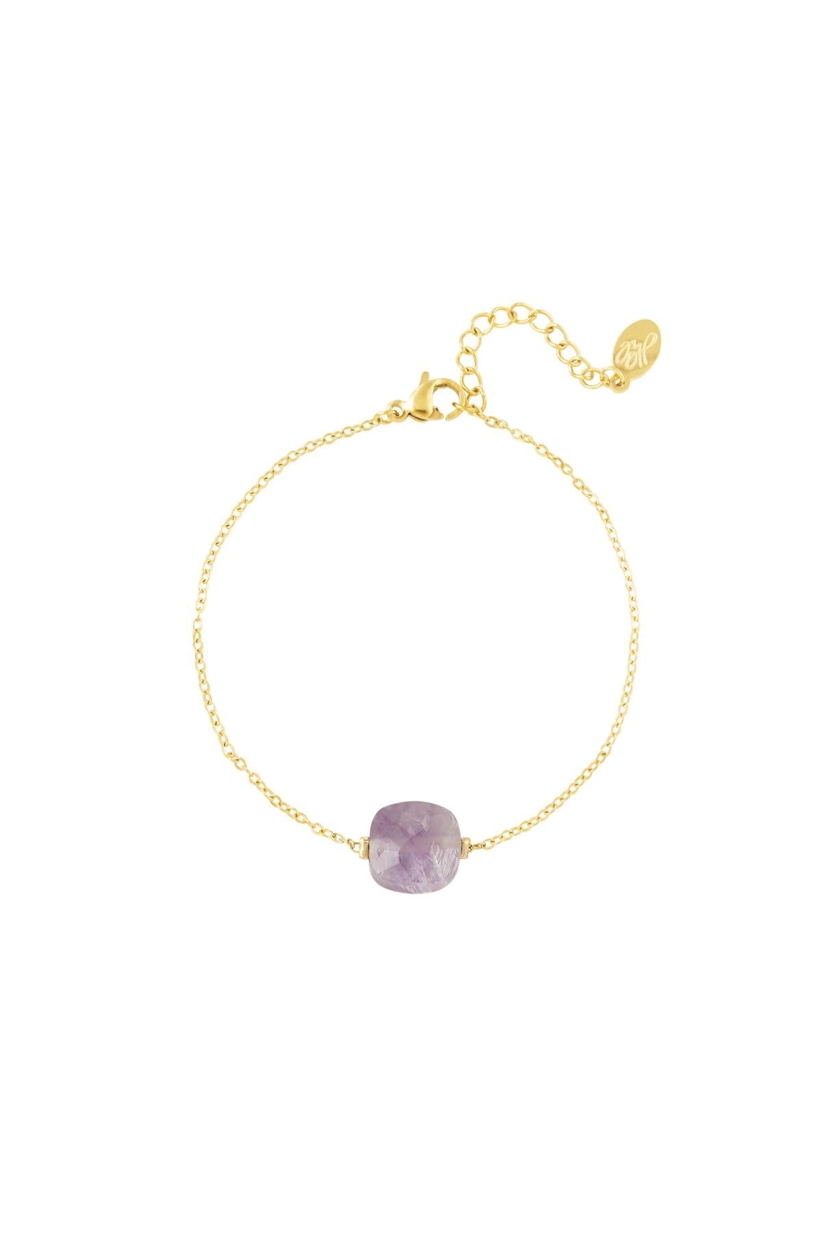 Deze elegante goudkleurige armband met de Amethist natuursteen werkt beschermend, zuiverend, ontspannend, brengt harmonie en innerlijke rust. Het kan helpen je hoofd helder te maken in de keuzes wat je maakt. Dit is een hulpmiddel geen medisch advies.
