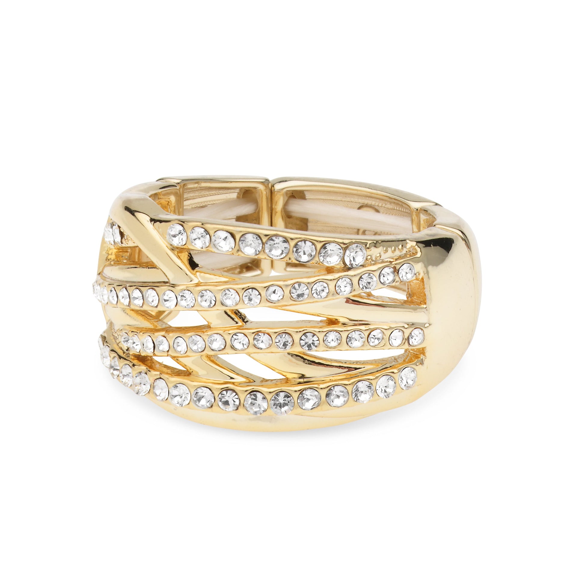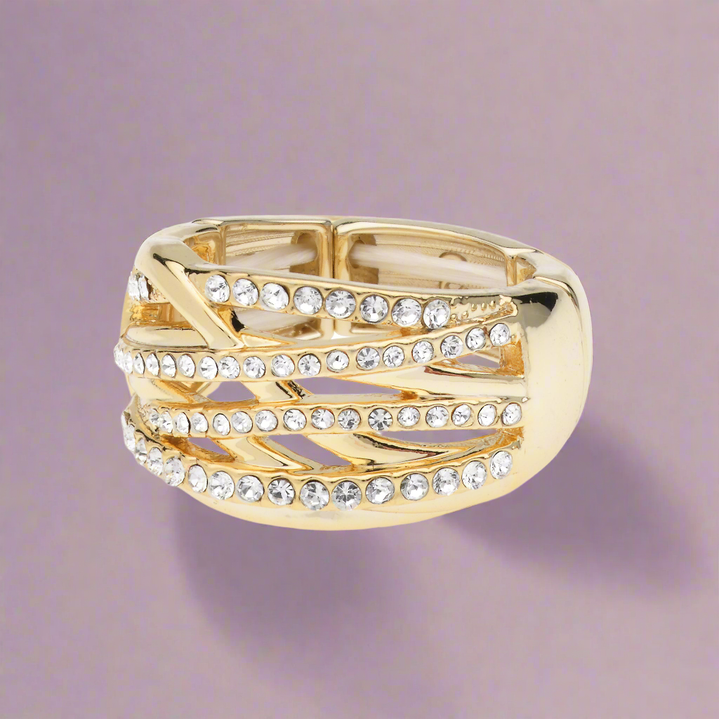 Goudkleurige elastische fantasie ring met witte steentjes BEjewels