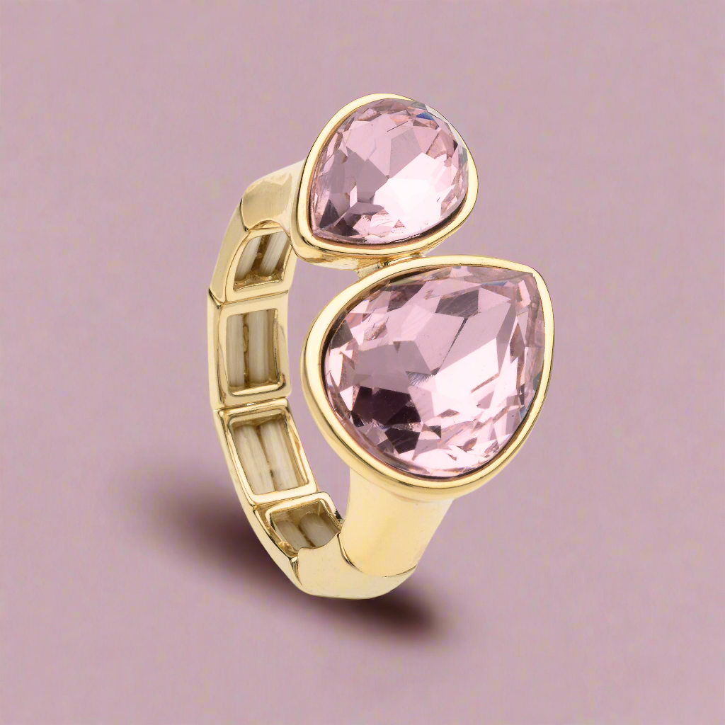 Deze prachtige goudkleurige elastische ring met roze stenen is een echte eye-catcher. Oogverblindend mooi en perfect om mee te stralen. Deze ring is ideaal voor elke gelegenheid of je nu naar een feestje moet of je dagelijkse outfit net dat beetje meer wil geven. Kan zowel als set maar ook heel goed apart van elkaar gedragen worden.Deze ring is one-size door zijn perfecte elastiek.