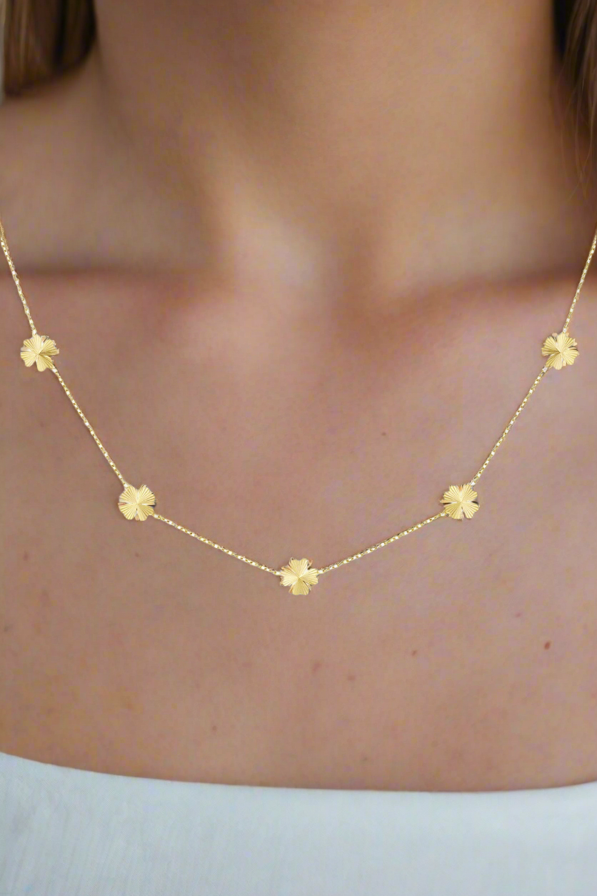 Ervaar geluk met onze Goudkleurige Goed Geluk Ketting. Deze prachtige ketting is voorzien van klavertjes vier voor een vleugje geluk op je dag. Een perfecte aanvulling op elke outfit, deze ketting brengt zeker wat positiviteit jouw kant op.