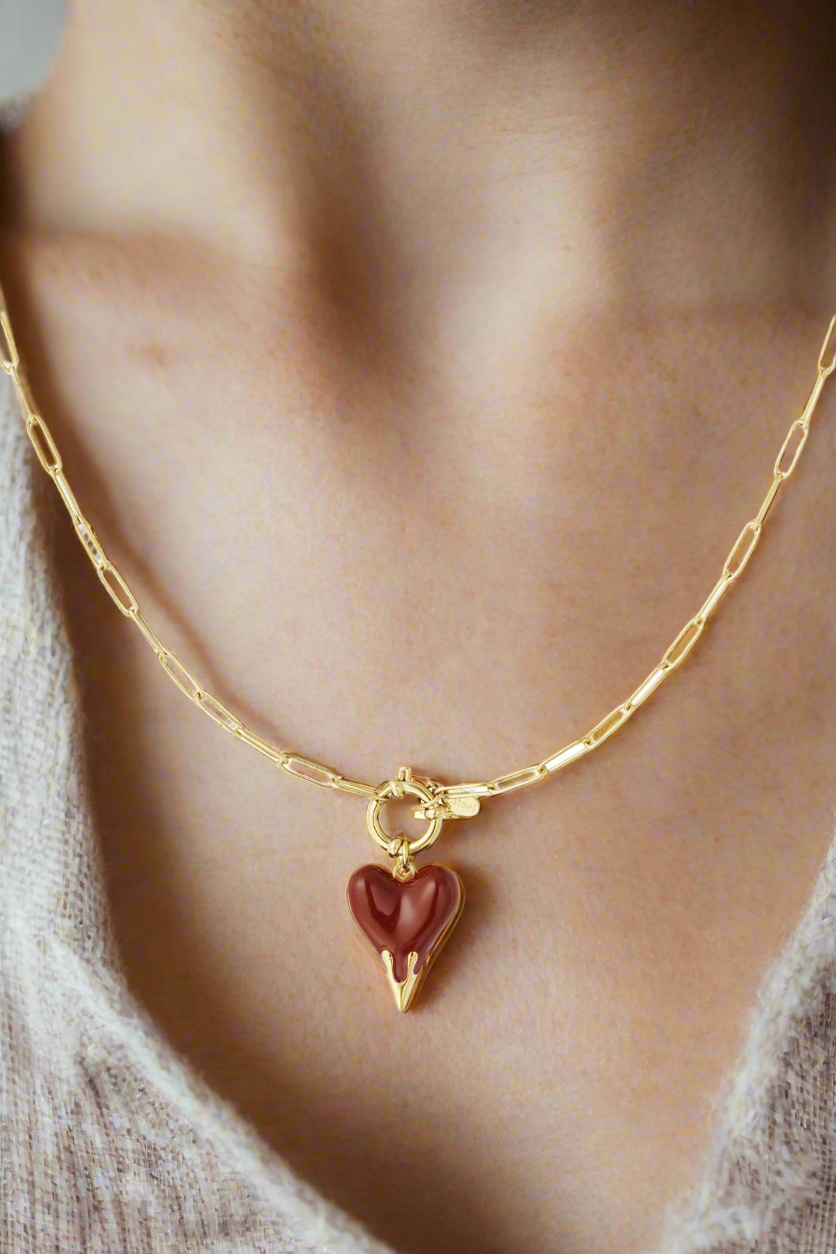 Ontdek de passie en schoonheid van de liefde met onze Goudkleurige Hart in Vuur ketting. De glinsterende gouden ketting vormt een perfecte aanvulling op het vurige donkerrode hart, dat de intensiteit van de liefde symboliseert. Het perfecte cadeau voor uw geliefde.