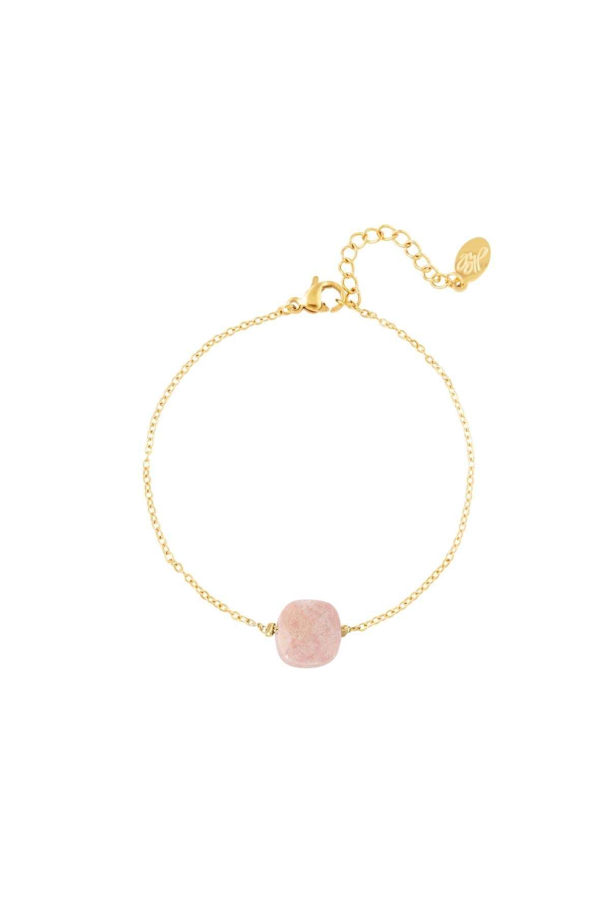 Deze elegante goudkleurige Rhodochrosiet natuursteen armband werkt activerend en maakt je vrolijk, spontaan, liefdevol en daadkrachtig. Deze steen maakt je creatief , inventief en enthousiast. Dit is een hulpmiddel geen medisch advies.