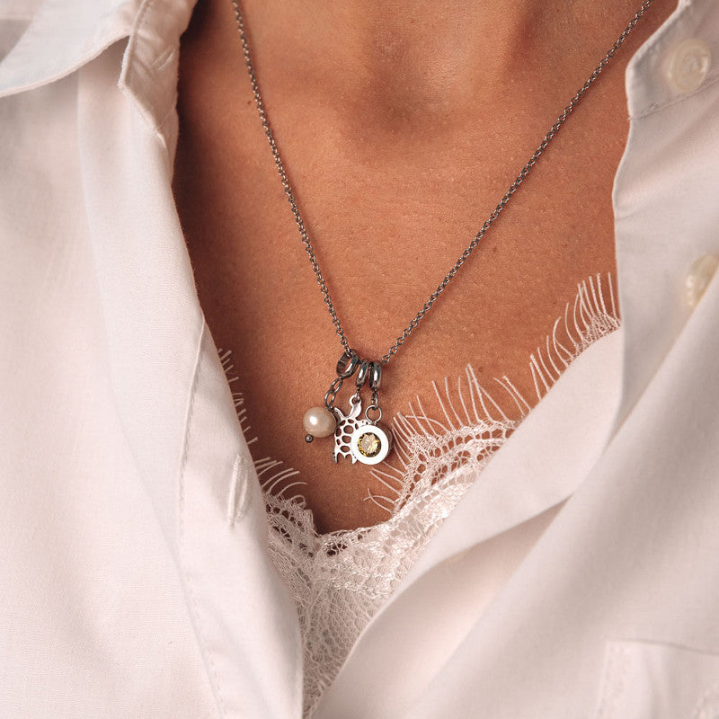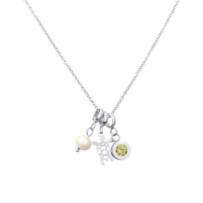 De iXXXi halsketting ‘Green Tide’ uit de Summer Bliss collectie bestaat uit de rosé goudkleurige ‘Halsketting 1mm’ van 40 cm samen met drie zomerse bedeltjes: ‘Bedel Pearl’, ‘Bedel Turtle’ en ‘Bedel CreArtive Base’ inclusief ‘Creartive Peridot’. Deze ketting is licht, speels en perfect voor zonnige dagen.