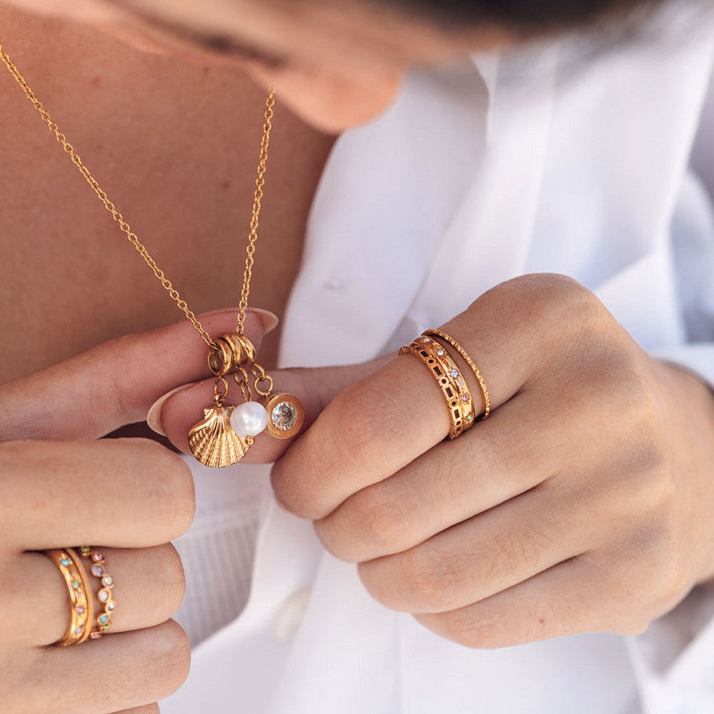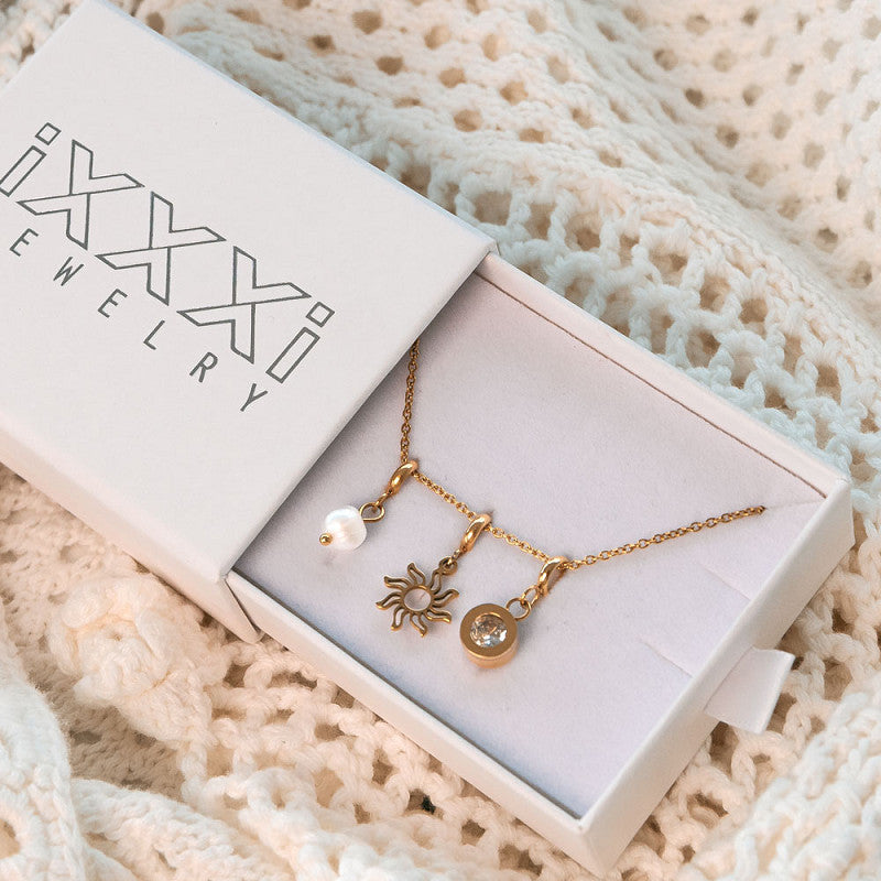 De iXXXi halsketting ‘Sunlit Soul’ uit de Summer Bliss collectie bestaat uit de goudkleurige ‘Halsketting 1mm’ van 40 cm samen met drie zomerse bedeltjes: ‘Bedel Pearl’, ‘Bedel Golden Hour’ en ‘Bedel Creartive’. Deze ketting is licht, speels en perfect voor zonnige dagen.