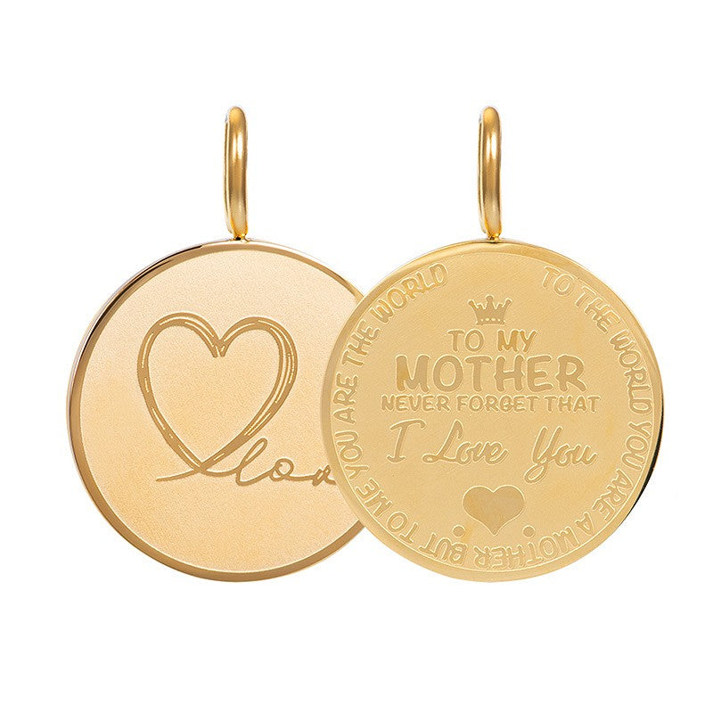 De iXXXi hanger Mother Love Small is gemaakt van stainless steel en is voorzien van een goud-, rosé goud- of zilverkleurige plating. De hanger bestaat uit een ronde hanger voorzien van teksten en hartjes en heeft een diameter van 19 millimeter.