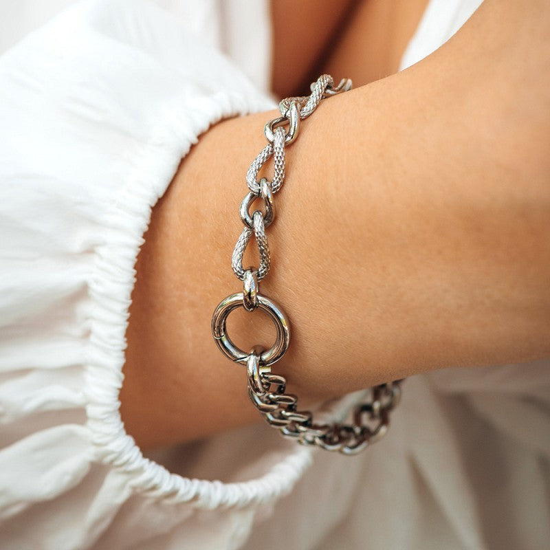 De ketting Bailey sieraad van iXXXi Connect is gemaakt van stainless steel. De streng bestaat uit twee verschillende soorten schakels, namelijk een kleine gladde schakel en een wat grotere schakel met reliëf die een speels effect aan de ketting geven.