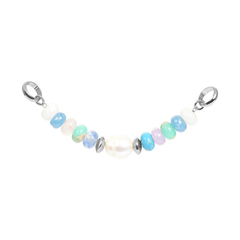 De iXXXi Connect Ketting ‘Ibiza’ is een zomerse ketting welke bestaat uit multicolor steentjes met in het midden een opvallende parel. Aan elk uiteinde van de ketting is een schakel bevestigd welke is gemaakt van stainless steel. De ketting ‘Ibiza’ is één van de sieraad onderdelen uit de iXXXi Connect collectie waarmee je je eigen sieraad kunt samenstellen.