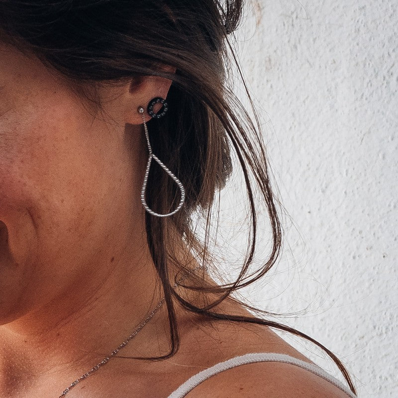 De iXXXi oorbellen Mind zijn gemaakt van stainless steel. De ear studs zijn langwerpige, druppelvormige oorhangers bestaande uit een fijne schakel en een gevlochten design.