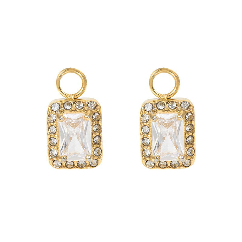 De iXXXi Hoop bedel Celebration is gemaakt van stainless steel. De bedel bestaat uit een rechthoekige vorm die is ingelegd met één grote zirconia steen en een aantal kleine zilverkleurige zirconia's rondom.