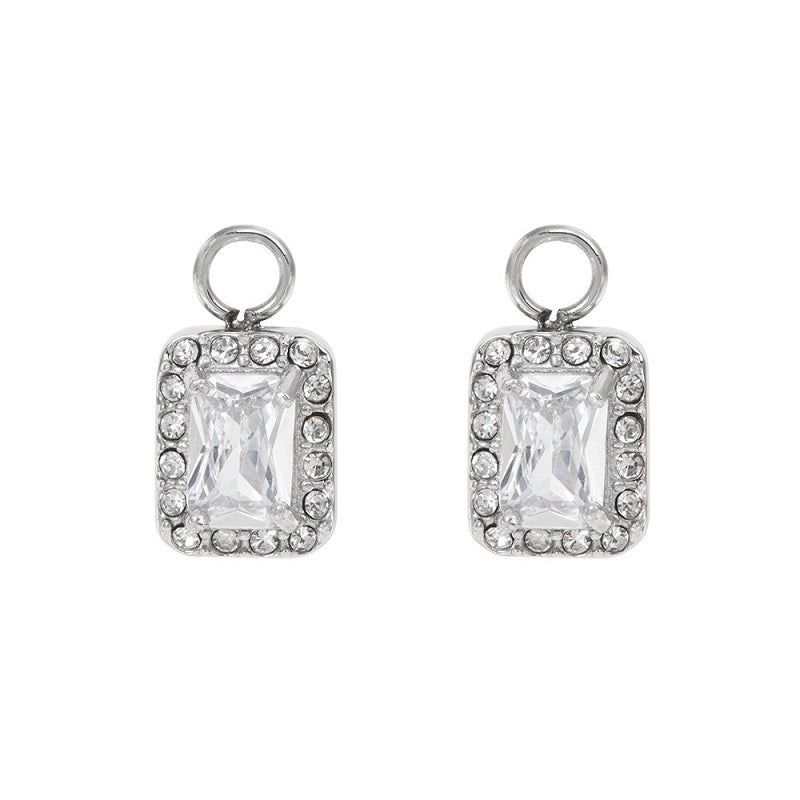 De iXXXi Hoop bedel Celebration is gemaakt van stainless steel. De bedel bestaat uit een rechthoekige vorm die is ingelegd met één grote zirconia steen en een aantal kleine zilverkleurige zirconia's rondom.